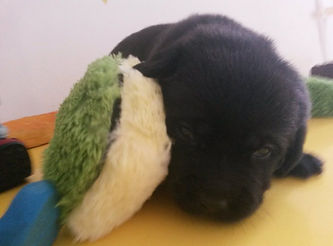 Pour la dernière étape de leur socialisation, il sont allés au marché et ont eu droit à un baby training avec des mini dummies qu'ils ont naturellement rapporté en vrais petits retrievers !
